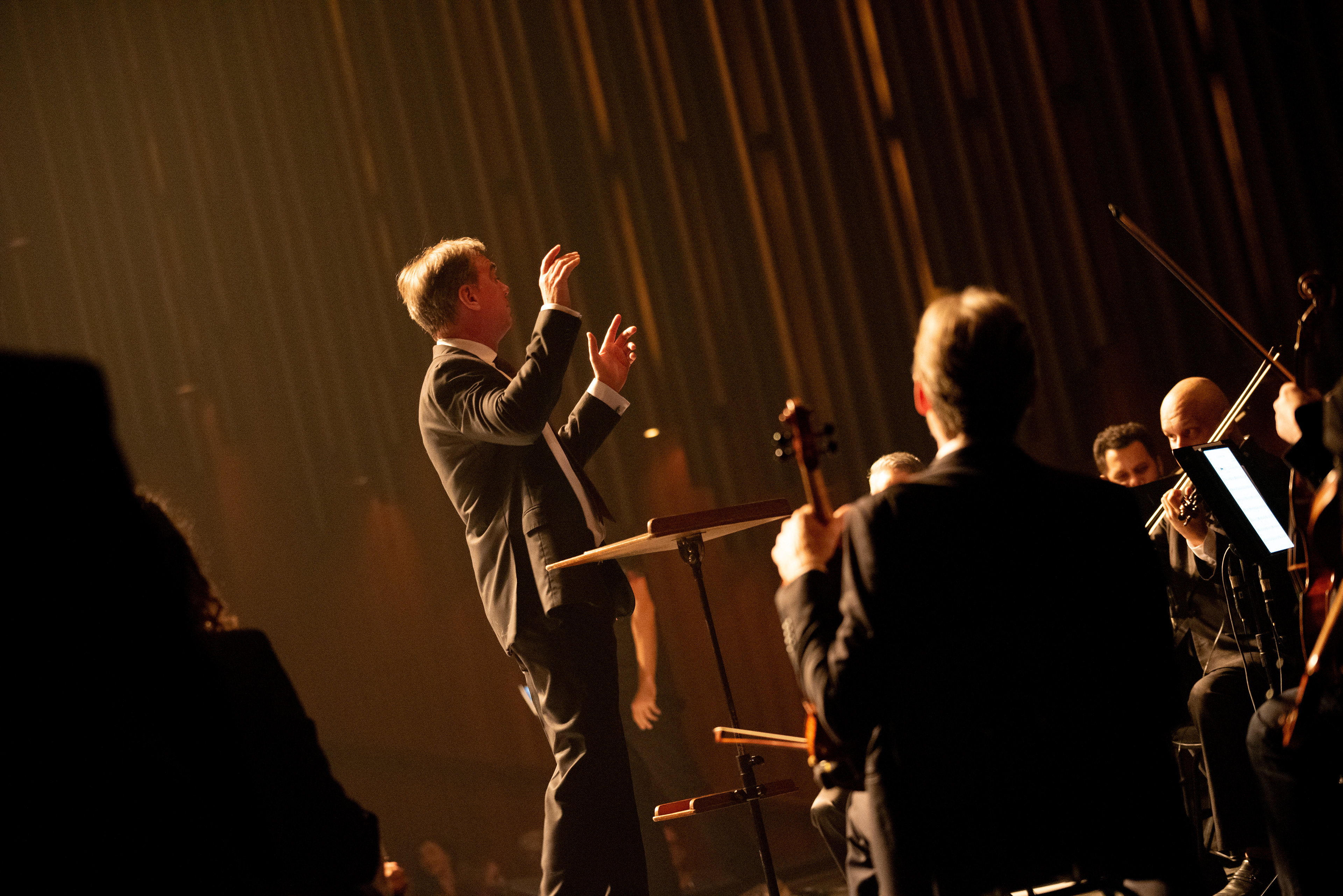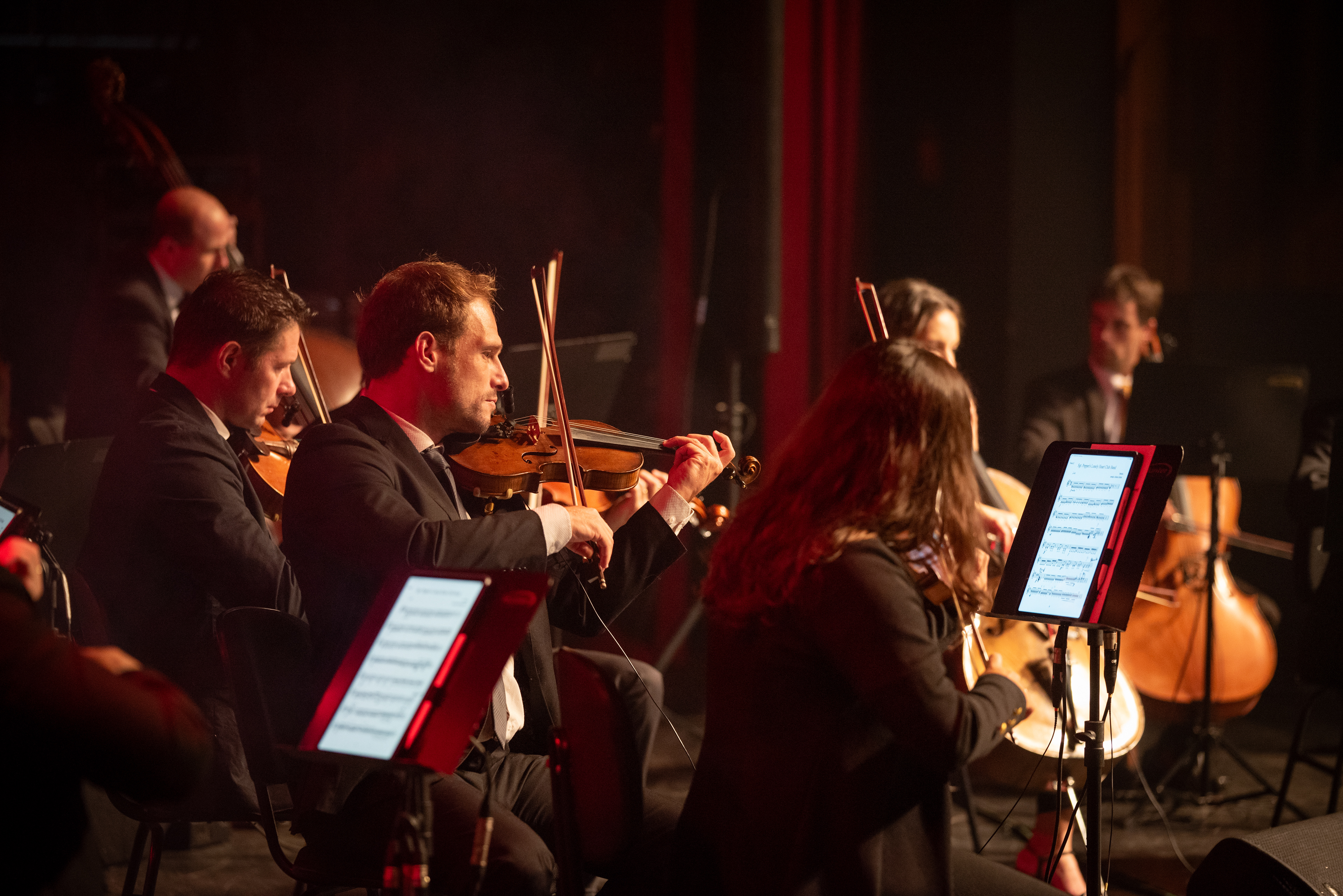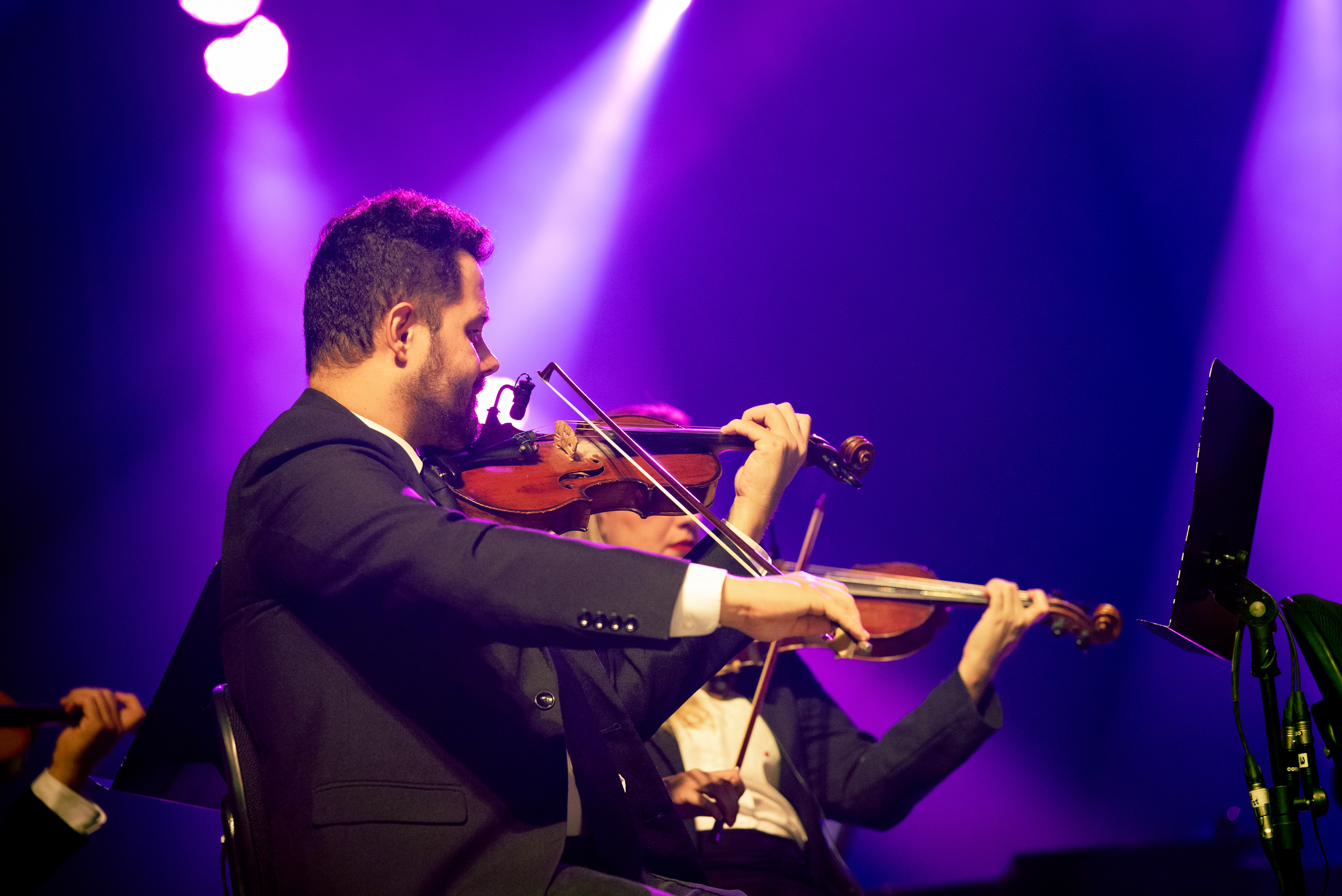 Registro fotográfico da Orquestra Camerata de Florianópolis no dia 21/03/2024 em seu show especial em homenagem à banda The Beatles.